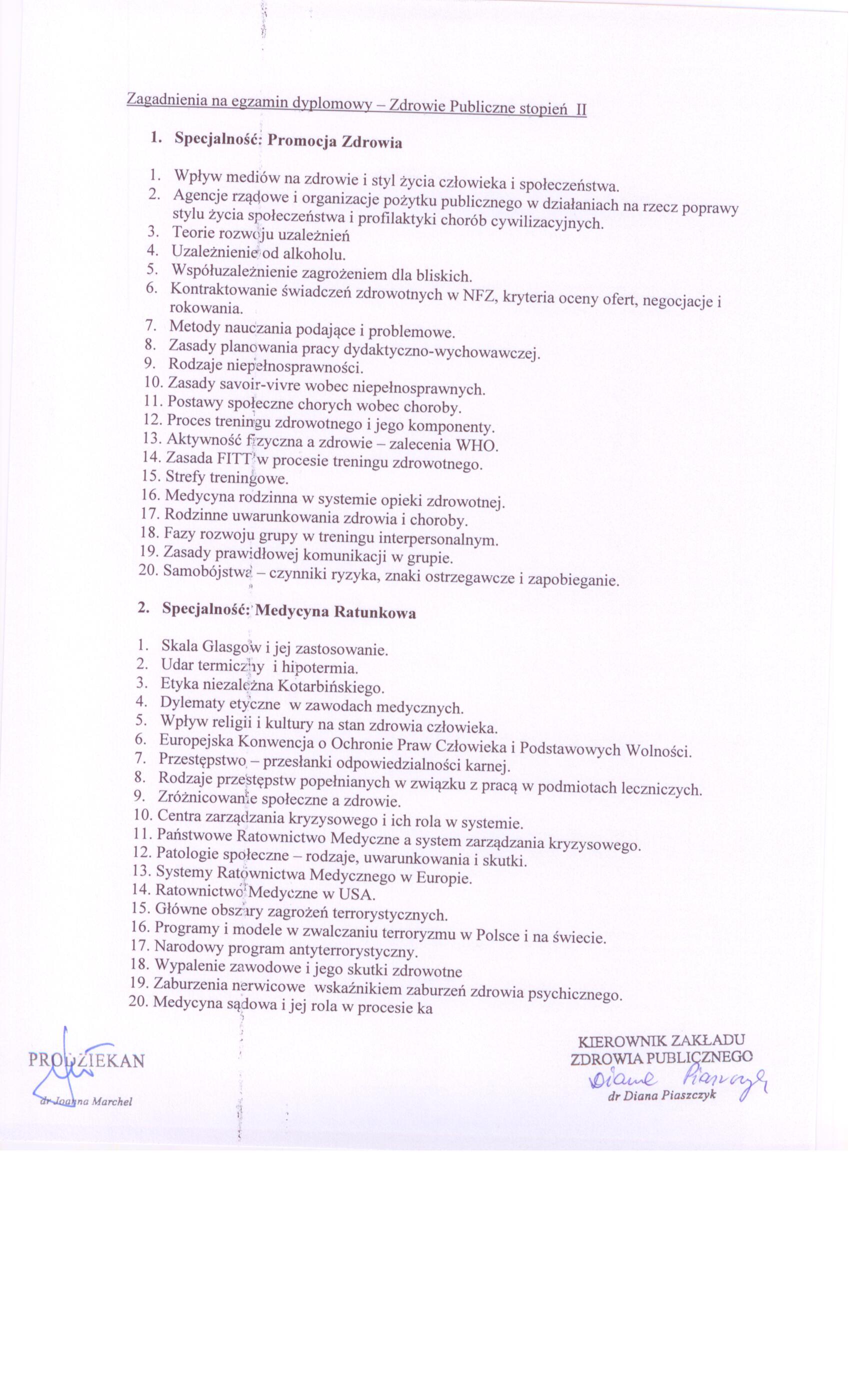 Zagadnienia egzamin dyplomowy Zdrowie Publiczne studia II stopnia