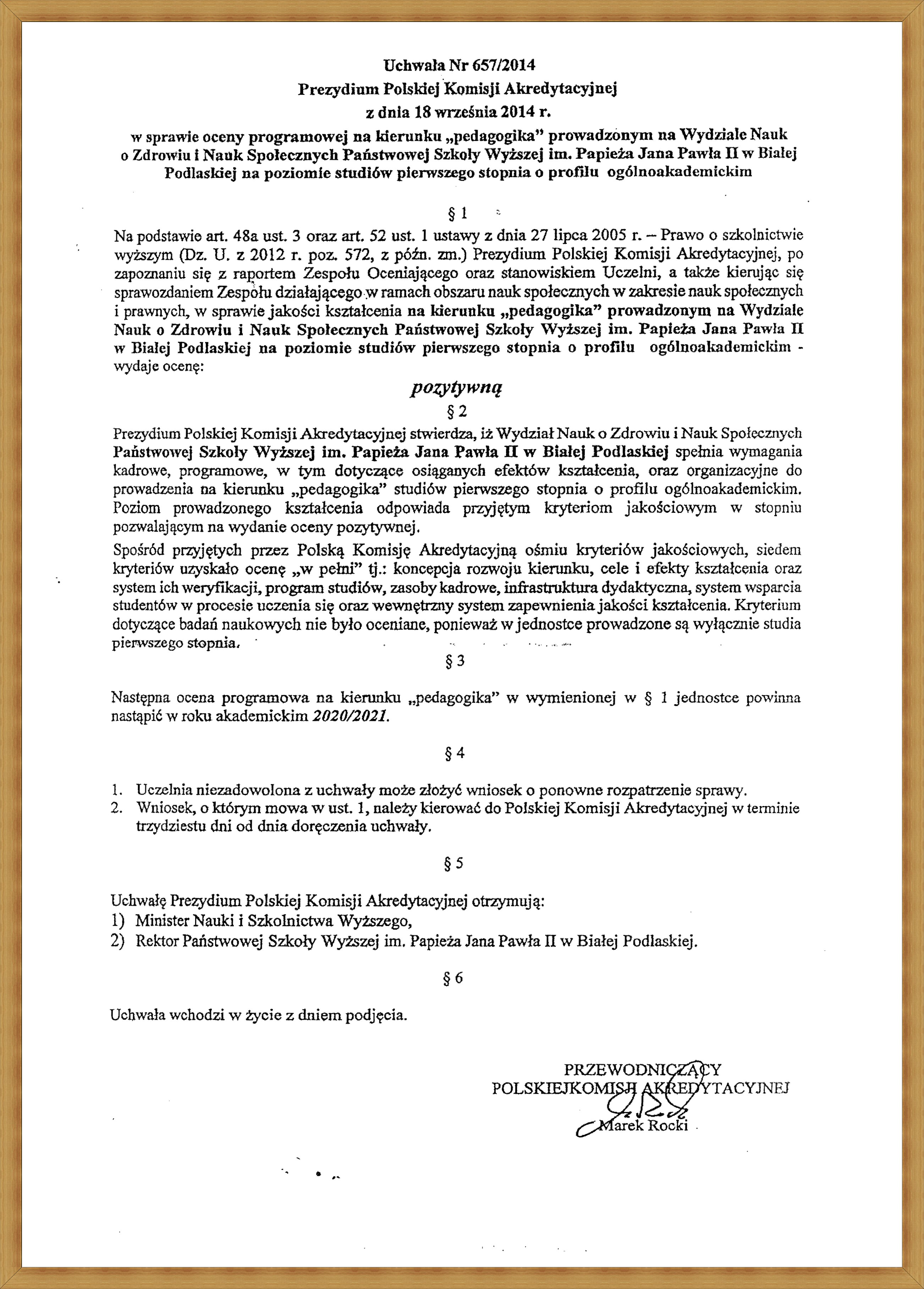na mocy Uchwały nr 657/2014 Prezydium Polskiej Komisji Akredytacyjnej z dnia 18 września 2014 roku,